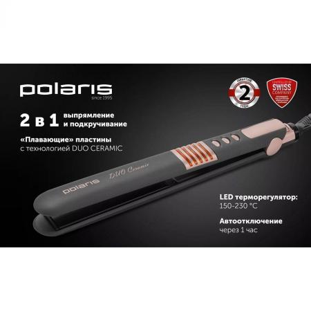 проверить балансВыпрямитель для волос Polaris PHS 2405K обладает пятью температурными режимами, что делает этот прибор незаменимым. Благодаря изменению температурного режима, максимум которого достигает 220 градусов, Вы можете создавать различные укладки. Чтобы нагреться до необходимой температуры, этой модели потребуется 60 секунд. Керамическое покрытие насадок обеспечивает эффективный результат и защиту волос от воздействия высоких температур. Пружинящие пластинки регулируют силу зажима пряди. Отсутствие дисплея на устройстве компенсируется наличием светового индикатора. Резиновый шнур длиною 1.8 метра вращается вокруг своей оси, при эксплуатации прибора не возникнет проблем с перекручиванием шнура. Модель Polaris PHS 2405K складывается в собранном виде. Прибор компактен и его можно брать с собой. Щипцы для выпрямления оснащены защитой от перегрева.