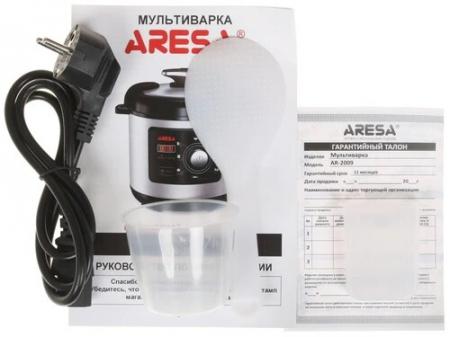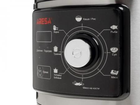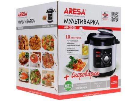 проверить балансМультиварка-скороварка ARESA AR-2009 представлена в немарком серебристо-черном дизайне. Устройство оснащено прочным корпусом из металла и жаропрочного пластика, а также чашей на 5 л с керамическим антипригарным покрытием. Используется поворотный механизм управления. Предусматривается наличие системы защиты от перегрева. Модель ARESA AR-2009 оснащена дисплеем и десятью автоматическими программами, а также таймером отсрочки на 24 часа и функцией поддержания температуры в течение суток. Наличие множества программ позволяет готовить даже рис, бобы и каши, холодец и рыбу. Мультиварка поставляется в комплекте с ложкой, мерным стаканом и книгой рецептов.