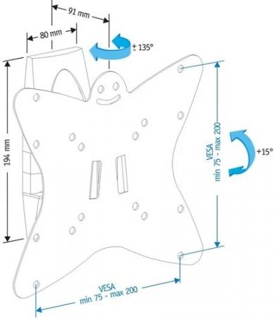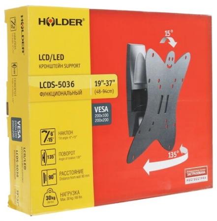 проверить балансКрепление для ТВ и мониторов Holder LCDS-5036 – настенный многофункциональный кронштейн, который имеет способность наклонно-поворотной регулировки. Конструкция предназначена для плоскопанельных устройств, отвечающих параметрам диагонали 19–37 дюймов. Модель способна выдержать максимальную нагрузку в 30 килограмм. Согласно стандарту Vesa кронштейн LCDS-5036 безопасно удерживает любые мониторы размеров 75х75 – 200х200. Есть один шарнир, который позволяет зафиксировать монитор в желаемой позиции. Допустимые углы наклона крепления вверх, а также вниз – это +/- 90° соответственно, а угол поворота – 135°. Выполнено крепление для ТВ и мониторов из надлежащего металла, а фактический цвет конструкции – классический черный. Holder LCDS -5036 монтируется к целевой стене учитывая минимальный/максимальный отступ в 90 миллиметров. Кронштейн совершенно безопасен. Его комплектация подразумевает наличие набора важных крепежей, а также понятной инструкции.