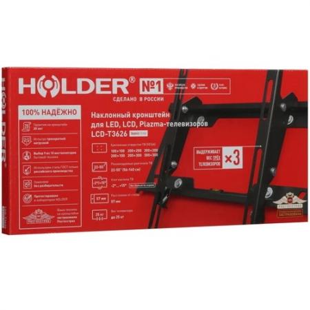 проверить балансКронштейн для ТВ Holder LCD-T3626-B в черном цвете служит для крепления телевизоров. Он поддерживает экраны от 22" до 55" и может выдерживать нагрузку до 25 кг. Устройство имеет стандарт размеров крепления VESA до 300 х 300. Holder LCD-T3626-B имеет расстояние от стены 57 мм. Модель имеет угол наклона до 2° вверх и до 15° вниз, что позволяет подстроить экран под нужный для просмотра угол.