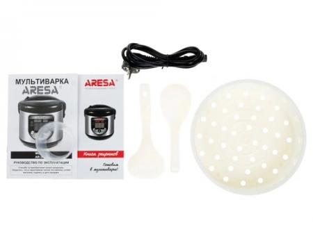 проверить балансМультиварка Aresa AR-2008 в корпусе из металла позволит вам разнообразить повседневное меню, затрачивая на готовку минимальное время. Просто заложите в 5-литровую чашу с керамическим антипригарным покрытием нужные ингредиенты и выберите подходящую программу или время готовки. Дальше все за вас сделает мультиварка. Для более удобного контроля за приготовлением прибор оснащен дисплеем, на котором отображается его текущее состояние (программа, время до конца готовки). Имеется функция поддержания температуры уже готового блюда. В мультиварке Aresa AR-2008 можно варить каши, супы, запекать овощи или мясо, делать холодец, жарить, выпекать вкусные кондитерские изделия или просто разогревать готовую еду. Всего в мультиварке предусмотрено 18 программ. Есть таймер отсрочки приготовления с максимальной продолжительностью в 24 часа. Мультиварка укомплектована мерным стаканом, ложкой, половником и контейнером для приготовления на пару. Также есть книга рецептов несложных блюд.