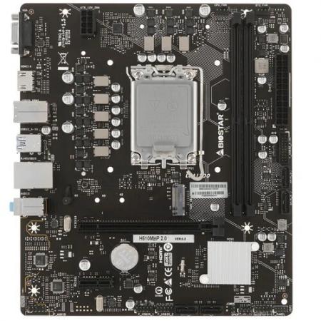 проверить балансМатеринская плата Biostar H610MHP 2.0 – надежная основа для сборки домашнего ПК или офисной рабочей станции. Она оборудована 2 слотами под размещение до 64 ГБ оперативной памяти, 4 разъемами SATAIII и 1 разъемом M.2 под установку накопителей, по одному слоту расширения PCI-E x16 и PCI-E x1 для графического адаптера. Модель представлена в компактном типоразмере Micro-ATX. Biostar H610MHP 2.0 обладает надежной элементной базой. Соединение с Интернетом осуществляется посредством проводного контроллера со скоростью 1 Гбит/с. Для подключения периферийных устройств предусмотрен ряд проводных интерфейсов: порты USB, видеовыходы HDMI и VGA, разъем PS/2 и аудио.