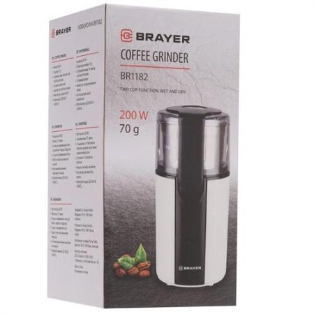 проверить балансКофемолка электрическая BRAYER 1182BR мощностью 200 Вт быстро измельчит не только кофейные зерна или орехи, но и другие сыпучие продукты. Пластиковый корпус имеет эстетичный дизайн. Съемная чаша для помола с ротационным ножом из нержавеющей стали прослужит вам долгое время. Мерный стакан позволит засыпать определенное количество кофейных зерен в емкость для перемалывания. Максимально можно смолоть 70 г. Прибор защищен от перегрева двигателя, что увеличивает его надежность. Для безопасности крышка устройства блокируется при работе. Кофемолка BRAYER 1182BR станет отличным помощником на кухне.