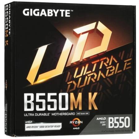 проверить балансМатеринская плата GIGABYTE B550M K обладает свойствами производительной и надежной основы для универсального системного блока. Она выполнена в компактном форм-факторе Micro-ATX и поддерживает работу с процессором AMD (разъем подключения AM4). Для подключения графического адаптера, модулей оперативной памяти и накопителей предусмотрены разъемы PCI-Ex16, DIMM DDR4, M.2 и SATA. GIGABYTE B550M K оборудована сетевым адаптером со скоростью 1 Гбит/с. Для периферийных устройств есть порты USB, видеовыходы DisplayPort и HDMI, разъемы аудио. Надежная элементная база с протестированными компонентами гарантирует исключительную стабильность, а фирменные утилиты помогают контролировать параметры и осуществлять их настройку.