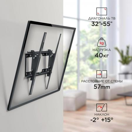 проверить балансКронштейн для ТВ Holder LCD-Т4624 оснащен износоустойчивой площадкой с усиленной конструкцией, которая позволяет ему ежедневно противостоять максимальной нагрузке до 40 кг, не подвергаясь деформации и появлению повреждений. Установка данного изделия осуществляется непосредственно на стену с возможностью последующей регулировки угла наклона. Кронштейн для ТВ Holder LCD-Т4624 незаменим для фиксации в различных помещениях и комфортного просмотра необходимого контента. Его весомым достоинством является универсальная направленность – так, представленная модель совместима не только с телевизорами, но также мониторами. Диагональ экрана устанавливаемого оборудования должна находиться в следующих пределах – от 32 до 55 дюймов.