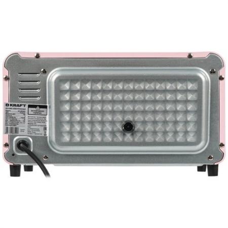 проверить балансМини-печь Kraft KFC-MO 90 HP в розовом металлическом корпусе подходит для разогревания бутербродов и пирогов, а также для приготовления небольших блюд. У нее есть 9-литровая камера с 2 ТЭНами. Работает прибор в 1 режиме, а температура внутри регулируется в диапазоне от 70 до 250°. Таймер рассчитан максимум на 2 часа непрерывной работы. Рельефные направляющие надежно удерживают противень и решетку. Откидная дверца и прорезиненные ножки служат удобству использования Kraft KFC-MO 90 HP.