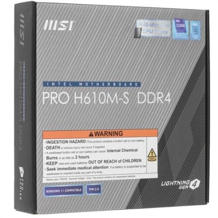 PRO Soc-1700 H610M-S DDR4 Intel H610 2xDDR4 mATX AC`97 8ch(7.1) GbLAN+HDMI