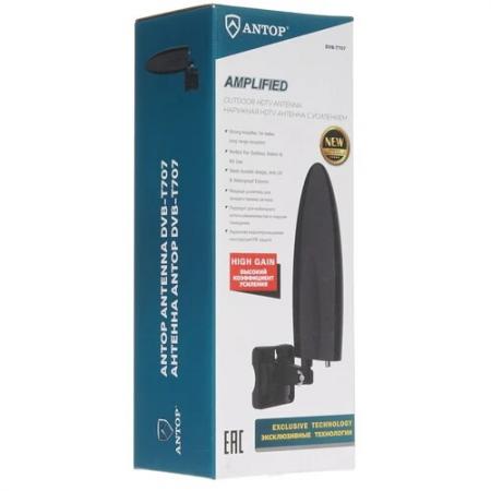проверить балансТВ-Антенна Antop AV-T707 представлена в стильном черном корпусе с компактными габаритами. Активный прибор используется для уличной установки и дополняется внешним питанием. Устройство гарантирует качественное усиление ТВ-сигнала при наличии коэффициента UHF 28 дБ. Прибор Antop AV-T707 поставляется вместе с адаптером питания, надежным распределителем постоянного тока и водозащитным колпаком. Благодаря наличию набора крепежных элементов установку устройства вы легко проведете самостоятельно. Данная модель принимает сигналы ДМВ (в диапазоне от 470 до 862 МГц) и МВ (от 87.5 до 230 МГц), а также поддерживает DVB-T2.