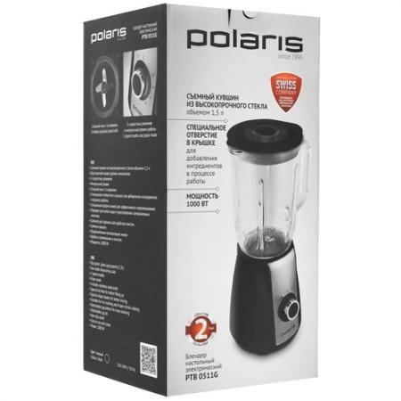 проверить балансБлендер Polaris PTB0511G в черном корпусе из металла и пластика является стационарной моделью и предназначен для смешивания и измельчения всевозможных продуктов. Также он может использоваться для колки льда. Модель обладает максимальной мощностью 1000 Вт, которая сочетается с 5 рабочими скоростями. Также она имеет импульсный режим. Емкость блендера объемом 1.5 л изготовлена из стекла и дополнена мерной шкалой. Нескользящие ножки блендера Polaris PTB0511G препятствуют скольжению по столу во время работы.