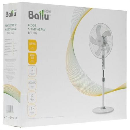 проверить балансВентилятор BALLU BFF – 802 традиционного белого цвета – привычное и понятное устройство для создания оптимальной атмосферы в помещении. Прибор мощностью 45 Вт имеет осевой рабочий механизм с пятью лопастями диаметром 35 см. Они вращаются на одной выбранной из 3 скоростей. Наклон и поворот рабочего механизма регулируются в зависимости от удобства пользователя. Простое механическое управление представлено кнопками. Высота модели может достигать 130 см. Устойчивое круглое основание вентилятора BALLU BFF – 802 препятствует его опрокидыванию. Корпус из металла и пластика отличается увеличенной прочностью. Это, а также класс пылевлагозащищенности IPX0 способствуют долгому сроку службы прибора.