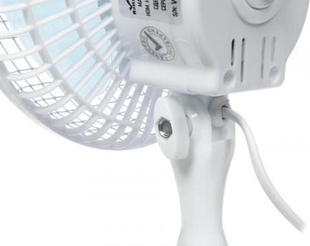 проверить балансВентилятор Centek CT-5003 станет вашим спасением в жаркое время года, когда каждый из нас мечтает об охлаждающем ветерке. Представленную модель необходимо устанавливать на стол, при этом за счет небольших размеров она не займет на нем много места. Симпатичное фиолетово-белое оформление корпуса позволит этому устройству стать настоящим украшением комнаты, к которому будут прикованы все взгляды. Мощности вентилятора, равняющейся 20 Вт, вполне достаточно для создания достаточно сильного потока воздуха. Вентилятор Centek CT-5003 располагает двумя скоростями, выбор осуществляется при помощи поворотного регулятора, располагающегося сзади. Диаметр лопастей данной модели равняется 155 мм. Корпус вентилятора изготовлен из пластика, благодаря чему за ним легко ухаживать. Длины сетевого шнура, равняющейся 1.8 м, достаточно для оптимального расположения устройства на столе на удалении от электророзетки. Предусматривается два варианта крепления прибора: при помощи подставки и посредством надежной прищепки.