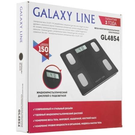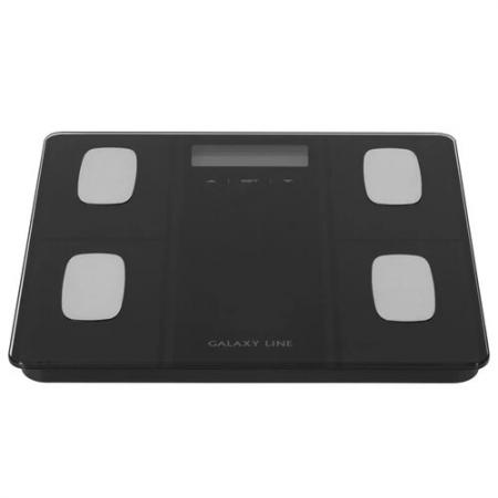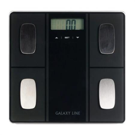 проверить балансЭлектронные весы Galaxy LINE GL4854 представлены в черном стеклянном корпусе в виде устойчивой платформы. Устройство с предельной нагрузкой 150 кг подходит для измерения веса детьми и взрослыми людьми. Модель работает от двух батареек «мизинчиков», заряда которых хватает надолго. Galaxy LINE GL4854 измеряют вес в килограммах, стоунах или фунтах с точностью 100 г. Дисплей дополнен индикаторами перегрузки и уровня заряда. Автовключение срабатывает при надавливании на весы рукой или ногой, а автовыключение – через несколько секунд бездействия. Диагностическая модель с памятью на 12 пользователей рассчитывает ИМТ, определяет доли воды, жировой, мышечной и костной тканей.