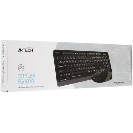 проверить балансКлавиатура+мышь A4Tech Fstyler FG1010 черного цвета идеально подходят для подключения к рабочему компьютеру. Отсутствие проводов обеспечивает аккуратное размещение комплекта на столе. Для подключения требуются свободные интерфейсы USB на ПК. В конструкции клавиатуры предусмотрена подставка для рук, за счет которой снимается напряжения с запястных суставов при длительной работе. А также у клавиатуры высокая степень влагозащиты, что позволяет уберечь ее от порчи при попадании на устройство воды или других напитков. У клавиатуры из комплекта A4Tech Fstyler FG1010 имеются 104 клавиши, включая цифровой блок и мультимедию. А мембранный механизм обеспечивает мягкое и тихое нажатие на каждую клавишу. Оптическая светодиодная мышь обладает высоким разрешением сенсорного датчика (2000 dpi). В зависимости от решаемых с ее помощью задач можно выбрать нужное разрешение из трех режимов (1000, 1600, 2000 dpi). Симметрично расположенные кнопки делают удобным управление мышкой и правой, и левой рукой. Специальная вставка серого цвета на ее корпусе обеспечивает противоскользящий эффект.