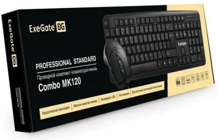 проверить балансExeGate Professional Standard Combo MK120 - проводной комплект, состоящий из классической влагозащищенной клавиатуры и трехкнопочной мыши с разрешением 1000 dpi.