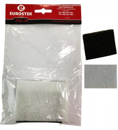 Набор фильтров для пылесоса Eurostek FVC-10 — необходимый комплект аксессуаров для пылесоса, состоящий из внутреннего и внешнего губчатого фильтра, которые способны удерживать мельчайшие частички пыли и обеспечивать чистый воздух при уборке помещения.