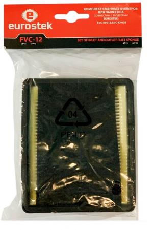 проверить балансКомплект сменных фильтров для пылесоса Eurostek FVC-12. Совместим с моделями Eurostek: EVC-KP01B, EVC-KP02B. Внутренний губчатый фильтр. Внешний Хепа фильтр