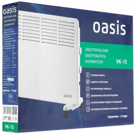 проверить балансКонвектор Oasis VK-15 мощностью 1500 Вт подходит обслуживания помещения площадью до 20 м?. Он выполнен в белом металлическом корпусе и оборудован нагревательным элементом, который не сжигает кислород. Регулируемый термостат определяет и поддерживает заданный температурный режим. На боковой стороне расположены поворотные механизмы для переключения 2 режимов мощности и плавной регулировки интенсивности обогрева. В комплекте с Oasis VK-15 поставляются крепежные элементы для настенного монтажа и ножки-опоры с колесиками для напольного размещения. Технология автоматического отключения в случае перегрева гарантирует безопасность в использовании конвектора.