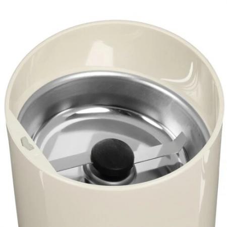 проверить балансКофемолка электрическая Bosch TSM6A017C в бежевом корпусе выполнена в форме колбы: такой дизайн устройства будет удобен в процессе пользования. Для измельчения зерен модель использует ротационный нож, лезвия которого изготовлены из нержавеющей стали. Это является залогом качественного и точного помола. Кофемолка является компактным приспособлением, ее размеры составляют 9x9x17 см, что позволяет установить прибор в любом уголке вашей кухни. Помол зерен при помощи кофемолки Bosch TSM6A017C возможен только при закрытой крышке. Когда крышка снята, срабатывает блокировка включения. Кнопка на корпусе устройства способствует безопасному выключению. За один раз прибор справляется с измельчением 75 г зерен кофе, что позволит из этого количества приготовить довольно много напитка. Мощность кофемолки достигает 180 Вт.