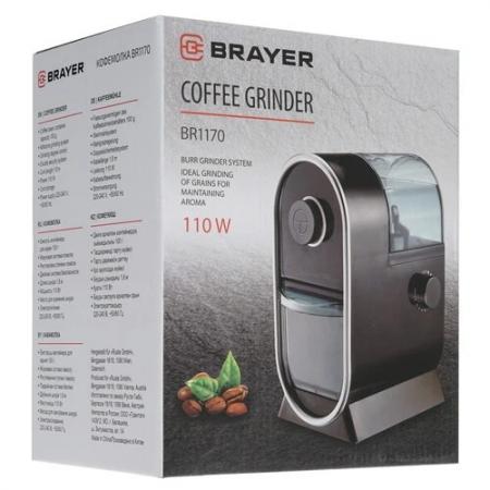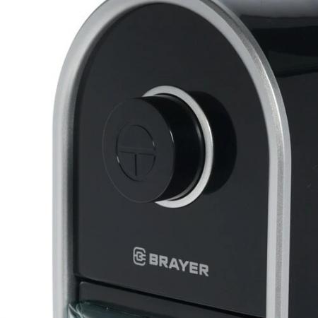 проверить балансКофемолка электрическая Brayer 1170 мощностью 110 Вт подходит для измельчения сухих сыпучих продуктов и кофейных зерен. Работает от сети 220 В. Корпус из высокопрочного пластика состоит из двух отсеков. Измельчение происходит при помощи жерновов. На корпусе имеется рычаг переключения, можно выбрать крупный или мелкий помол зерен. Дозатор кофемолки Brayer 1170 позволяет смолоть или отсыпать определенное количество кофе. Максимальная доза помола 100 гр. На две чашечки эспрессо достаточно 15 г. Импульсный режим работы защищает мотор от перегрева и увеличивает срок эксплуатации прибора.