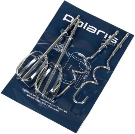 проверить балансРучной миксер Polaris PHM 7016 оснащен мощностью 700 Вт и 5 скоростными режимами включая режим "Турбо". К прибору прилагаются 2 венчика для взбивания и 2 крюка для замешивания теста. В приборе предусмотрена кнопка отсоединения насадок.