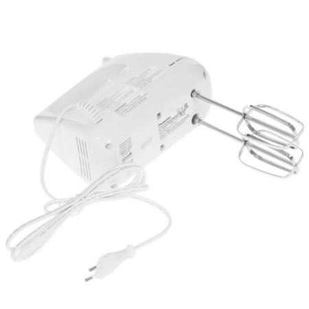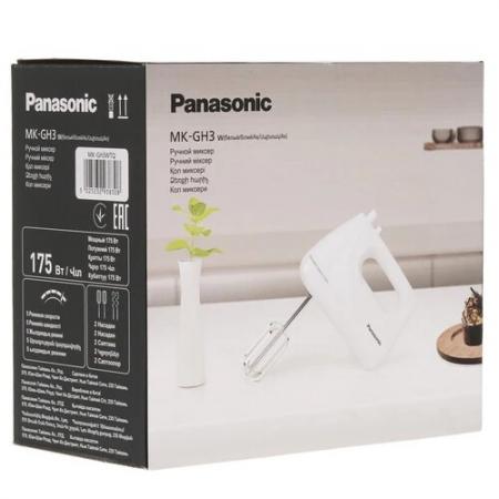 проверить балансКомпактный ручной миксер Panasonic MK-GH3WTQ поможет замесить тесто или соус в любой подходящей посуде. Широкая ручка не выскальзывает из ладони, а удобно расположенные кнопки позволят быстро выбрать одну из пяти скоростей. Насадки легко отсоединяются нажатием на одну кнопку, а ваши руки и кухонный стол остаются чистыми. Устройство Panasonic MK-GH3WTQ оснащено кабелем 1.7 м, длины которого достаточно для удобной работы. Миксер поставляется с двумя венчиками и двумя удобными крюками для теста, готовки пюре, кремов и соусов. Прибор легко очистится от брызг и прочих загрязнений, не займет много места в кухонном шкафу.