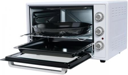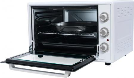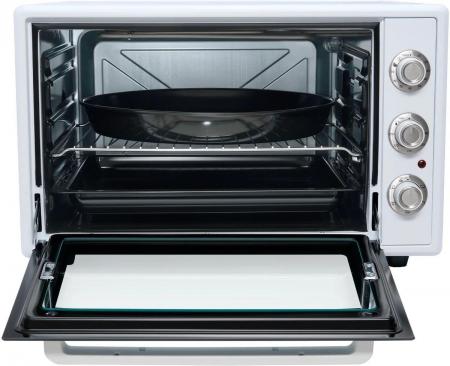 проверить балансЭлектрическая мини-печь making Oasis everywhere M-65CW2 – компактный кухонный прибор, идеально подходящий для небольшой кухни. Эта модель позволяет без дополнительных усилий запечь картофель или курицу с хрустящей корочкой. Полезный рабочий объём составляет 65 литров. Лаконичный дизайн в белом цвете гармонично впиcывается в современный интерьер. Интуитивно понятное механическое управление позволяет быстро настроить температуру, режим и время готовки. Устройство имеет пять режимов работы: нижний нагрев, верхний нагрев, нижний + верхний нагрев, верхний + конвекция, нижний + верхний + конвекция. Температура регулируется в диапазоне от 50 до 250°С. Конвекция обеспечивает равномерное распределение тепла, благодаря чему ингредиенты пропекаются равномерно. Благодаря таймеру можно установить время, необходимое для приготовления блюда. О работе мини-печи сигнализирует световой индикатор. Двойное термостойкое стекло не допускает теплопотерь внутри камеры и даёт возможность контролировать ход приготовления. Внутренняя камера сделана из нержавеющей стали, которая устойчива к коррозии, перепаду температур и механическим повреждениям. Отличным подспорьем при готовке послужат: противень, решётка и круглый поднос для пиццы, идущие в комплекте. Противоскользящие ножки обеспечивают устойчивость на гладкой поверхности.