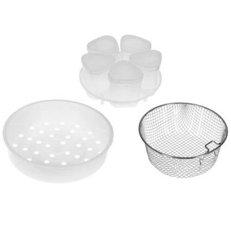 мерный стакан, корзина для фритюра, половник, плоская лопатка, емкости для йогурта, корзина для приготовления на пару