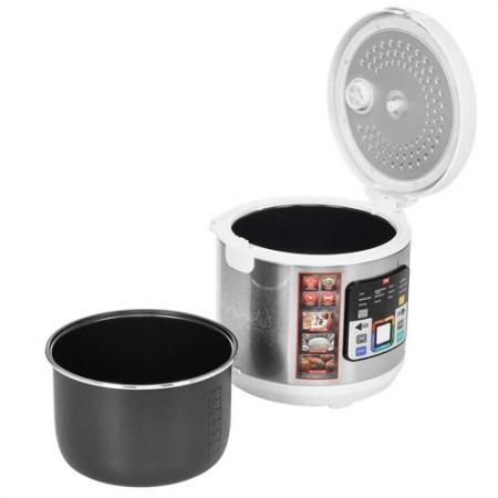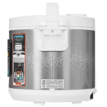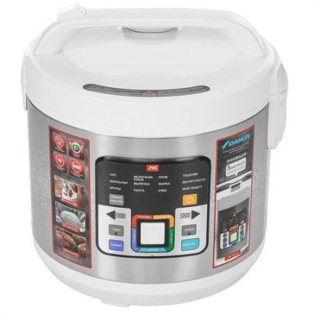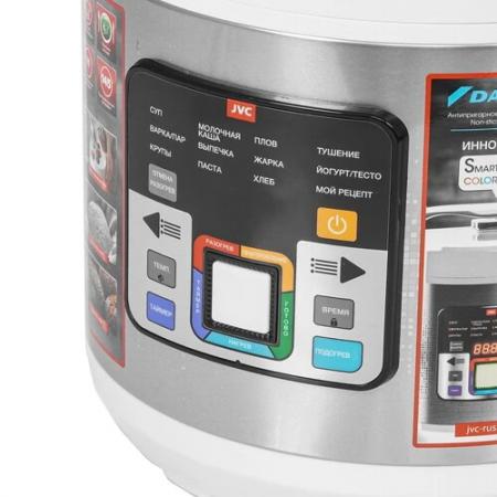 проверить балансМультиварка JVC JK-MC509 в бело-серебристом корпусе оснащена 11 автоматическими программами и 145 программами ручной настройки. Это делает ее подходящей для приготовления супов, молочных каш, плова, тушения, варки на пару, выпечки, жарки. Также в ней можно поставить тесто на расстойку или сделать йогурт. Мультиварка JVC JK-MC509 имеет функцию «Мультиповар», которая позволяет устанавливать температуру и время приготовления вручную. Также есть опция «СмартШеф плюс». Она автоматически корректирует время и температуру в зависимости от веса продуктов. Прибор обладает термоизолированным корпусом, цифровым светодиодным дисплеем и удобной панелью управления.