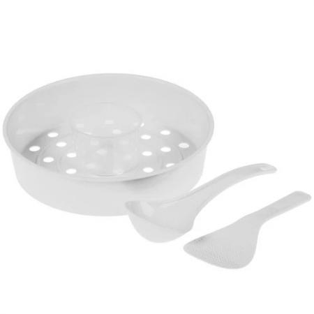 емкость для приготовления на пару, чаша, половник, книга рецептов, документация, шнур питания, плоская ложка, мерная емкость