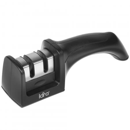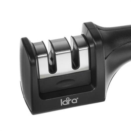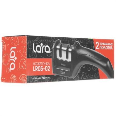 проверить балансНожеточка Lara LR05-02 – удобный механический прибор с двумя точильными полотнами. Изделие не займет много места в кухонном шкафу, но поможет сэкономить время и нервы. Устройство представлено в черном пластиковом корпусе с устойчивой конструкцией и удобной для удержания ручкой. Приспособление Lara LR05-02 для заточки ножей нельзя мыть – только протирать влажной тряпочкой. Простота использования позволяет быстро наточить любой кухонный нож в считанные секунды. При соблюдении рекомендаций срок службы ножеточки неограничен.