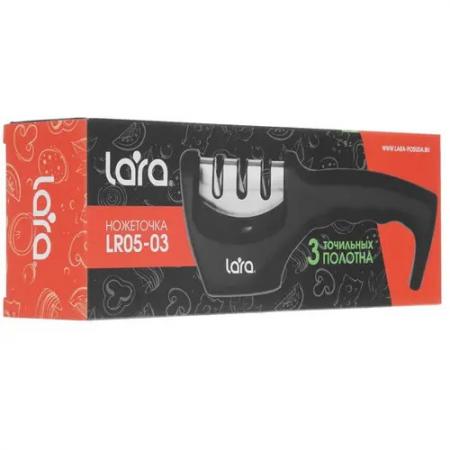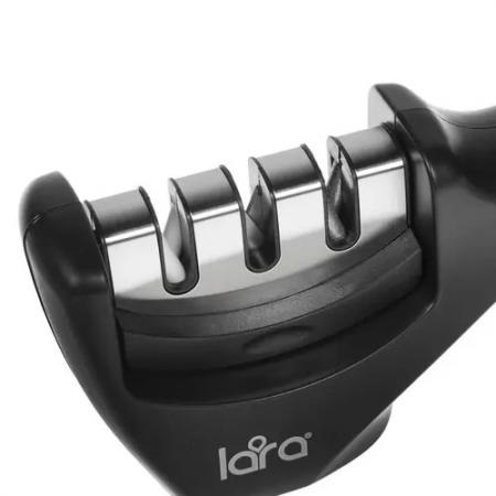 проверить балансНожеточка Lara LR05-03 представлена в компактном пластиковом корпусе с прочной металлической основой и керамическими элементами. Универсальная конструкция позволяет удерживать приспособление левой или правой рукой. А устойчивая основа и длинная ручка делают эксплуатацию максимально безопасной. Устройство Lara LR05-03 с тремя точильными полотнами поможет быстро и без особых усилий наточить кухонные ножи. Благодаря компактным размерам ножеточка не займет много места в кухонном шкафу. Приспособление с эргономичным черным корпусом при необходимости можно только протирать влажной тряпочкой без замачивания и использования чистящих средств.