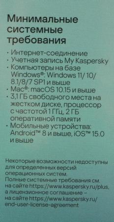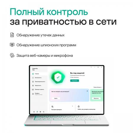 проверить балансKaspersky Plus + Kaspersky Who Calls обеспечивает полную безопасность, высокую производительность и конфиденциальность. Решение предоставляет полный набор функций для защиты конфиденциальности: безопасность данных и онлайн-платежей, надежное управление паролями, обнаружение несанкционированного подключения к сети Wi-Fi, а также защиту от звонков спамеров и мошенников. Решение работает на ОС Windows и macOS, а также на Android и iOS-устройствах. Для использования решения требуется учетная запись My Kaspersky. Kaspersky Plus подходит для продления продуктов Kaspersky Anti-Virus, Kaspersky Internet Security. Обязательно установите новое приложение Kaspersky, чтобы воспользоваться всеми функциями.