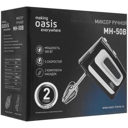 проверить балансРучной миксер making Oasis everywhere MH-50B – компактный, но высокопроизводительный кухонный прибор. За считанные минуты устройство превращает сливки в пышную пену, доводит яичные белки до устойчивых пиков и замешивает негустое тесто для блинчиков или кляра. Кроме того, можно готовить молочные коктейли или домашние соусы, например, майонез.