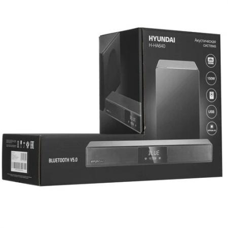 проверить балансСаундбар Hyundai H-HA640 мощностью 150 Вт состоит из колонок и отдельно стоящего сабвуфера. Модель обеспечивает чистое и всестороннее звучание и позволяет создать дома или в офисе настоящий праздник для меломанов. Корпус изготовлен из прочного и простого в уходе пластика. Саундбар Hyundai H-HA640 поддерживает Bluetooth-соединение, благодаря которому можно управлять настройками с помощью смартфона. Модель поддерживает MP3 форматы и позволяет воспроизводить любимые композиции с USB-носителей. Также на корпусе есть выходы HDMI и оптический входы для подключения дополнительного оборудования. Модель работает от стандартной электросети. На передней панели есть дисплей для удобного контроля настроек.