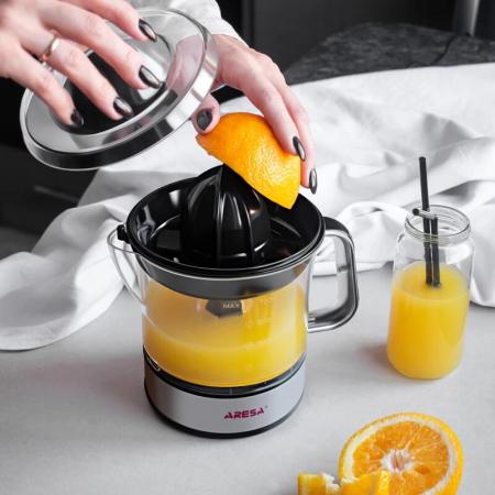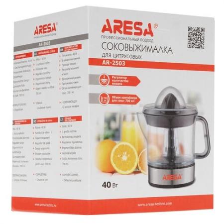 проверить балансСоковыжималка электрическая Aresa AR-2503 – компактный серебристый прибор с емкостью для сока на 700 мл. Устройство работает на одной скорости, позволяя быстро получить вкусный и натуральный сок из цитрусовых фруктов. Прибор действует от стандартной сети с мощностью всего 40 Вт. Конструкция Aresa AR-2503 дополнена нескользящими резиновыми ножками и пластиковой сеточкой. Комплектация включает чашу с защитной крышкой и 2 конуса. Данная модель соковыжималки позволяет регулировать количество мякоти, делая работу максимально простой и удобной.