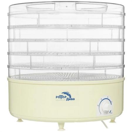 проверить балансСушилка для овощей и фруктов РОТОР ДИВА СШ-007-10 в традиционном белом цвете открывает максимум возможностей для создания полезных и удобных заготовок, не требуя особых усилий. Модель предоставляет широкий диапазон рабочих температур от 20° до 70°, и при вертикальном обдуве позволяет установить наиболее подходящий режим дегидрации: длительный при небольшом нагреве или ускоренный. 5 больших секций вмещают в себя крупную партию продуктов – до 5 кг, чтобы процесс не отнимал у пользователя много сил или времени. С мощностью в 520 Вт это показывает оптимальную производительность, позволяя делать заготовки сезонных плодов с сохранением всей их пользы. Чаша электросушилки РОТОР ДИВА СШ-007-10 производится из пищевого пластика, который не впитывает запахи и не выделяет вредных веществ при нагреве. Сушеные ломтики прекрасно хранятся при комнатной температуре в герметичной таре и не занимают много места.