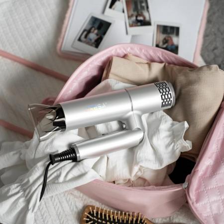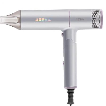 проверить балансФен ARESA AR-3230 — дорожный вариант со складной ручкой. С помощью переключателя на ручке можно регулировать скорость подачи воздуха и температуру его нагрева. Эти параметры зависят друг от друга. В комплекте идёт насадка-концентратор, которая создаёт направленный поток воздуха для быстрой сушки волос и создания укладок. Мощность фена составляет 1250 Вт, длина шнура — 1,7 метра. Прибор защищён от перегрева.