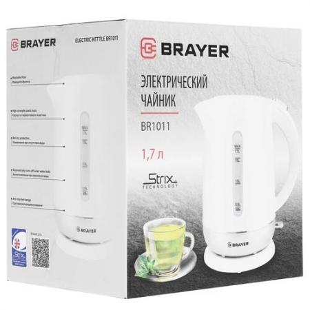 проверить балансЭлектрочайник BRAYER BR1011 представлен в белом корпусе из глянцевого пластика с серебристой вставкой. Он имеет оптимальный объем в 1.7 л и мощный нагревательный элемент, который скрыт под пластиной из нержавеющей стали. Контроллер STRIX, установленный в электрочайнике, обеспечивает до 15000 циклов включения/выключения. Он автоматически отключает прибор при закипании воды и при ее отсутствии внутри колбы. Это предполагает длительную и безопасную эксплуатацию электрочайника. Поддерживается возможность вращения чайника на подставке на 360 °. В носике электрочайника BRAYER BR1011 размещен нейлоновый съемный фильтр, благодаря которому частицы накипи не попадут в чашку. На корпусе прибора есть мерная шкала, что позволит наливать точное количество жидкости. С помощью подсветки кнопки включения можно определить текущее состояние электрочайника. В подставке имеется отсек для хранения сетевого шнура. Это обеспечит аккуратное размещение электрочайника на кухне.