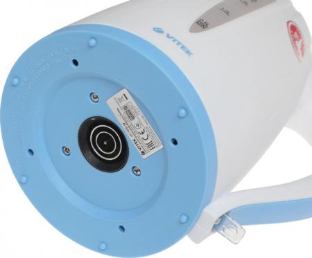 проверить балансЭлектрочайник Vitek VT-7031(W) обеспечит быстрое и простое кипячение воды для чая или кофе. Приятная, бело-голубая расцветка чайника позволит ему гармонично смотреться в большинстве кухонных интерьеров. Внутри пластикового корпуса установлен скрытый нагревательный элемент из нержавеющей стали. На нем не будет собираться накипь и электрочайник можно легко помыть при загрязнении. Чтобы частички накипи вместе с водой не попадали в чашку, в носик чайника встроен фильтр. Он легко снимается и чистится. Провод электрочайника имеет оптимальную длину (0.7 м) и его можно убрать внутрь подставки при необходимости. На корпусе электрочайника Vitek VT-7031(W), с двух сторон, имеется шкала уровня воды. Таким образом, вы всегда будете в курсе, сколько воды находится в чайнике и надо ли еще доливать. В случае, если электрочайник окажется пустым, то вы не сможете его включить, сработает защитная функция от включения без воды. Это убережет прибор от преждевременной поломки, а ваш дом от пожара. Подставка у электрочайника имеет особую конструкцию, предусматривающую возможность вращения чайника на ней на 360 градусов. Благодаря этому очень удобно брать чайник с поставки и ставить на нее.