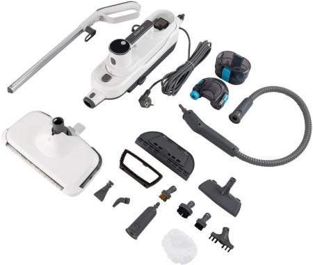 проверить балансНадежная упаковка заказа. Domfy DSW-SM710 – паровая швабра и ручной пароочиститель 2 в 1. Одно устройство способно легко и быстро трансформироваться в другое в зависимости от выполняемых задач. Раздельные резервуары для воды и моющего средства, 12 сменных насадок в комплекте и возможность регулировки интенсивности парообразования позволяют эффективно очищать напольные покрытия, окна, мебель, бытовую технику, посуду и одежду. Пароочиститель-трансформер. Превратить Domfy DSW-SM710 в ручной пароочиститель или в паровую швабру можно с помощью кнопки фиксации удлинительной трубки. Температура пара на выходе 125 ?. Пар эффективно удаляет различные виды загрязнений и уничтожает 99,99 % вирусов даже без использования моющих средств за счет высокотемпературного воздействия. Поворот основания на 360°. Шарнирный механизм крепления основания обеспечивает повышенную маневренность, позволяя орудовать шваброй в ограниченном пространстве. 3 уровня подачи пара. Используйте низкий уровень для деликатных материалов и поверхностей, средний – для регулярной уборки и высокий – для устранения стойких загрязнений. LED-индикация состояния. Светодиодный индикатор оповестит о включении, готовности парогенератора к работе, а также выбранном уровне мощности парообразования. Раздельные съемные резервуары. Емкость для воды объемом 350 мл и контейнер для моющего средства на 100 мл можно наполнить, предварительно отсоединив от основного блока. Регулировка подачи моющего средства. При помощи специального регулятора можно настроить расход чистящего средства. Фильтр защиты от накипи. Съемный фильтрующий элемент защищает от образования известковых отложений, продлевая срок службы прибора и препятствуя появлению разводов на очищаемых поверхностях. Насадка для ковров. Обеспечивает легкость перемещения паровой швабры по ковровому покрытию. Щелевая насадка и насадка-концентратор.