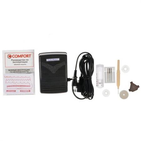 проверить балансШвейная машина Comfort 115 – функциональный электромеханический прибор с горизонтальным челноком и возможностью шитья в нескольких направлениях. Устройство действует от стандартной электросети, выполняя 19 швейных операций. Прибор способен осуществлять потайную и оверлочную строчку, а также делать петли в полуавтоматическом режиме. Устройство Comfort 115 оснащено удобной рукавной платформой и небольшим отсеком для удобного хранения аксессуаров. Поставка осуществляется вместе с набором игл и шпулек, отверткой, распарывателем и рамкой для полуавтоматической петли. Прибор весит 5 кг и обладает размерами 41x32x16 см.