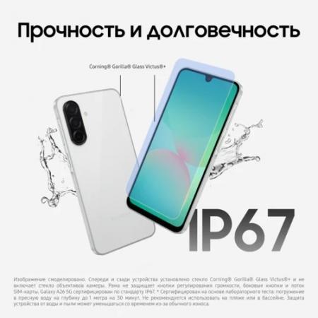 проверить балансSamsung Galaxy A26 — тонкий, элегантный и прочный телефон. Смартфон оснащен 6,7-дюймовым дисплеем Super AMOLED FHD+, обеспечивающим невероятный пользовательский опыт. Он устойчив к воде и пыли, не боится падений и оснащен 6-летними обновлениями системы безопасности и операционной системы, что делает его надежным и долговечным телефоном. Это настоящий повседневный помощник с аккумулятором емкостью 5000 мАч и функцией быстрой зарядки.