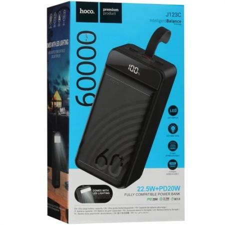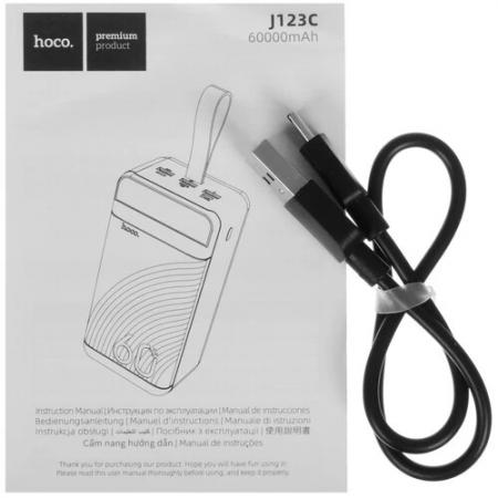 проверить балансПортативный аккумулятор Hoco J123С черного цвета на 60000 мАч с полезной емкостью 33000 мАч поддерживает напряжение 4.5, 5, 9, 12 В. Он подойдет для подзарядки маломощных устройств, планшетов, легких ноутбуков. Его хватит на 7-9 полных зарядов смартфонов со средней емкостью аккумулятора 3500-4500 мАч или 1-2 подзарядки ноутбука. Одновременно от пауэрбанка можно заряжать 4 прибора через интерфейсы USB Type-A, USB Type-C. Портативный аккумулятор Hoco J123С поддерживает быструю зарядку и сможет зарядить смартфон/планшет до 50% за 15-20 минут. Защита от перегрева и перегрузки предотвращает поломку АКБ и подключенных устройств в случае неисправности сети. С помощью дисплея будет удобно отслеживать уровень заряда, напряжение и другие параметры. Ремешок позволяет носить АКБ на руке или вешать на крючок.