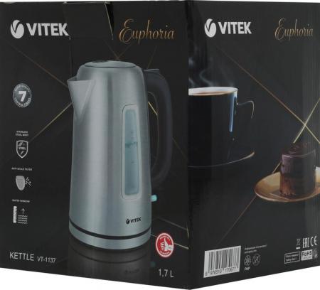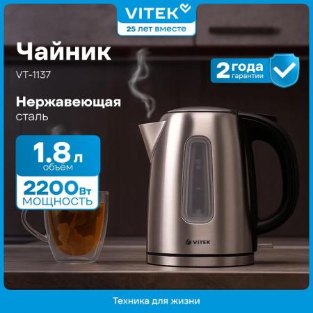 проверить балансЭлектрический чайник Vitek VT-1137 объединяет высокую производительность и лаконичный дизайн в металлическом корпусе. Мощность 2200 Вт и скрытый нагревательный элемент обеспечивают быстрое кипячение воды без контакта с накипью. Объем 1.7 л подходит для использования в бытовых условиях.