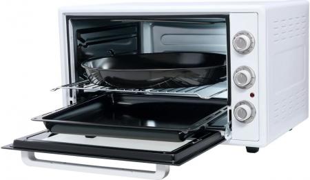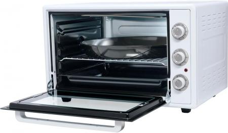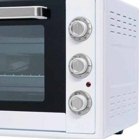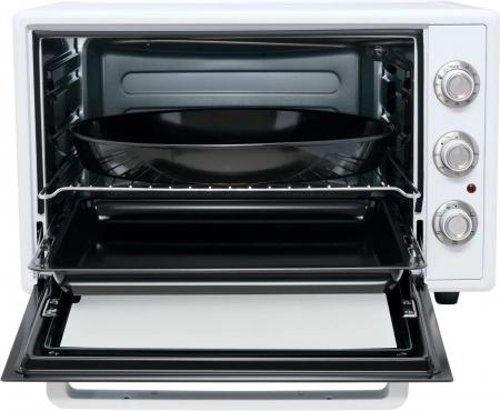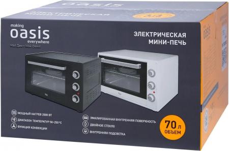проверить балансЭлектрическая мини-печь making Oasis everywhere M-70CW2 – компактный кухонный прибор, идеально подходящий для небольшой кухни. Эта модель позволяет без дополнительных усилий запечь картофель или курицу с хрустящей корочкой. Полезный рабочий объём составляет 70 литров. Лаконичный дизайн в белом цвете гармонично впиcывается в современный интерьер. Интуитивно понятное механическое управление позволяет быстро настроить температуру, режим и время готовки. Устройство имеет пять режимов работы: нижний нагрев, верхний нагрев, нижний + верхний нагрев, верхний + конвекция, нижний + верхний + конвекция. Температура регулируется в диапазоне от 50 до 250°С. Конвекция обеспечивает равномерное распределение тепла, благодаря чему ингредиенты пропекаются равномерно. Благодаря таймеру можно установить время, необходимое для приготовления блюда. О работе мини-печи сигнализирует световой индикатор. Двойное термостойкое стекло не допускает теплопотерь внутри камеры и даёт возможность контролировать ход приготовления. Внутренняя камера сделана из нержавеющей стали, которая устойчива к коррозии, перепаду температур и механическим повреждениям. Отличным подспорьем при готовке послужат: противень, решётка и круглый поднос для пиццы, идущие в комплекте. Противоскользящие ножки обеспечивают устойчивость на гладкой поверхности.