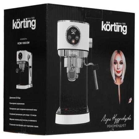 проверить балансКофеварка KCM 1003 EW, выполненная в нежном белом цвете, отличается компактными размерами – ширина всего 13 см, – внутри которых скрывается мощная помпа с давлением 20 бар. Это устройство позволяет готовить классические напитки: латте, капучино и эспрессо. Удобный цветной сенсорный дисплей предоставляет возможность автоматически выбирать напитки и программировать размеры порций одним касанием. Платформа для подогрева чашек, которая встроена в кофеварку, помогает поддерживать оптимальную температуру напитка, тем самым улучшая раскрытие аромата и вкуса кофе. Аппарат комплектуется рожком из металла и двумя фильтрами к нему – на одну и две чашки, а также насадкой-капучинатором для получения густой устойчивой молочной пены. Также в набор входят мерная ложка и уплотнитель для кофе. Противоскользящие ножки обеспечивают надежное положение кофеварки на поверхности, а съемный поддон позволяет установить более крупную чашку при необходимости.