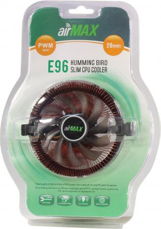 проверить балансAirMax E96 — ультратонкий кулер для охлаждения процессоров Intel и AMD. Подходит для использования в мини-ПК, ноутбуках и моноблоках. Низкий профиль до 28 мм, что обеспечивает быстрое рассеивание тепла без шума; технология Pressed-Fix для высокой эффективности охлаждения; регулируемая скорость вращения и 4-контактный разъём для управления скоростью, что позволяет настроить кулер в соответствии с потребностями системы; дизайн острого лезвия, что делает кулер ультратонким и легко устанавливаемым.