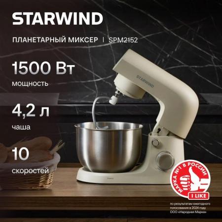 проверить балансПланетарный миксер Starwind SPM2152 — это незаменимый помощник на кухне. Благодаря своей мощности в 1500 Вт и трем насадкам в комплекте, он позволяет выполнять множество задач: замес теста, взбивание белков и сливок, смешивание ингредиентов для соусов и кремов. Миксер выполнен из прочного пластика, а прорезиненные ножки обеспечивают его устойчивость на любой поверхности. Чаша из нержавеющей стали объемом 4,2 литра позволит вам готовить большие порции продуктов. В комплекте с миксером идут три насадки: венчик для взбивания, крюк для замешивания теста и лопатка для перемешивания. Они изготовлены из прочного металла, который не подвержен коррозии. 10 скоростей вращения позволяют выбрать идеальные настройки для смешивания продуктов. Кроме того, миксер оснащен импульсным режимом, который позволяет кратковременно увеличить мощность для более эффективного смешивания и очистки насадки. Защитный обод для чаши, оснащенный окном для добавления ингредиентов, предотвращает разбрызгивание во время работы и предоставляет дополнительные функции: разделяйте белки и желтки, разрезайте тесто без риска повреждения поверхности стола, и храните насадки прямо на миксере. Модель SPM2152 имеет стильный минималистичный дизайн и компактный корпус. Это надежный и эффективный инструмент для вашей кухни, который прослужит вам долгие годы.