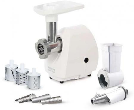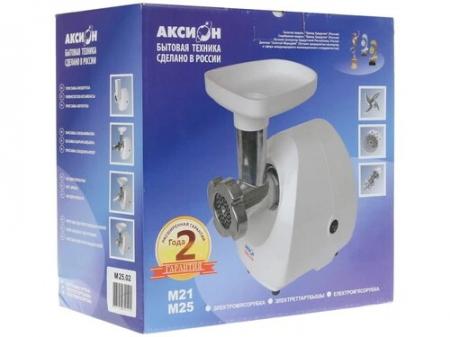 проверить балансМясорубка Аксион М25.02 поможет быстро приготовить фарш. Корпус и лоток представленного устройства сделаны из пластика белой расцветки. Габариты модели составляют 22,6х22х16.4 см. Мощность мясорубки равна 1500 Вт. Производительность модели составляет 1.7 кг фарша за минуту. Устройство может непрерывно работать в течение 15 минут. Мясорубка Аксион М25.02 оснащена 1 перфорированным диском для приготовления фарша. Также в комплект входит 2 насадки для терки, 1 для шинковки и насадка для приготовления сока. Максимальная высота используемой посуды не должна превышать 115 мм. Для подключения к сети используется 1-метровый шнур. Прорезиненные ножки обеспечивают устойчивость мясорубки на столе и препятствуют ее скольжению во время использования.