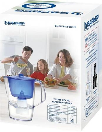 проверить балансФильтр-кувшин классической круглой формы для небольшой семьи. Объем отфильтрованной воды 1,6 литра. Воронка автоматически откидывается при наклоне кувшина. Герметичное резьбовое соединение исключает попадание неочищенной воды в отфильтрованную. В комплекте с фильтром-кувшином кассета БАРЬЕР Старт. Она умягчает воду, уменьшая образование накипи, защищает от хлора и хлорорганических соединений, тяжелых металлов и других вредных примесей. Удаляет посторонние привкусы и запахи, улучшает вкус воды. Ресурс кассеты — 200 литров.